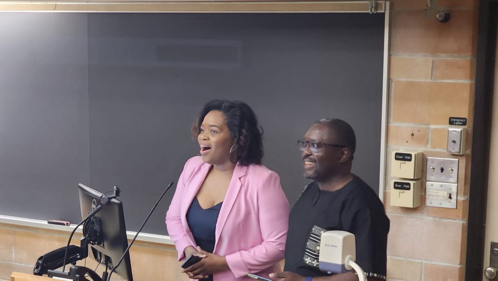 AHC Public Relations Director, Marsha Bennett and General Secretary, Efuange Khumbah, presenting the vision of the African Heritage Centre at the Canadian Association of African Studies event, June 5, 2025, University of Toronto, Scarborough, Ontario, Canada.